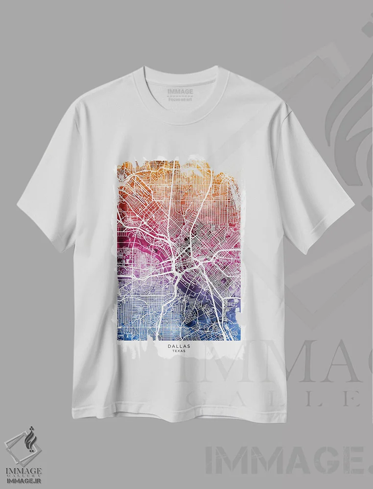 تی شرت «نقشه دالاس تگزاس» و الهام از رنگ های مدرن