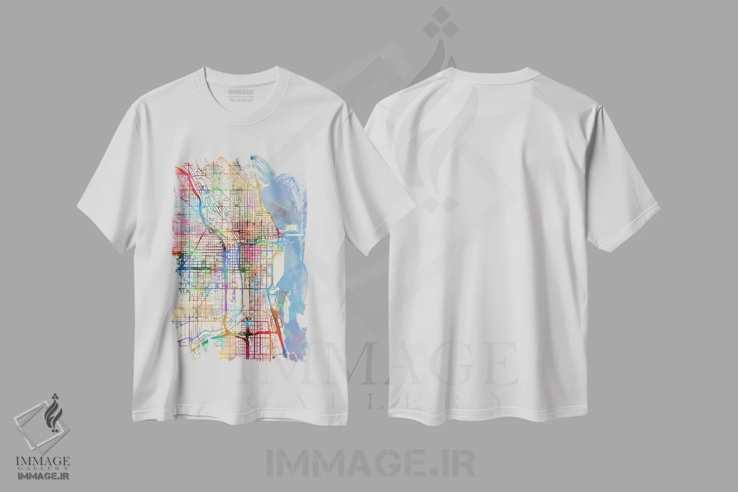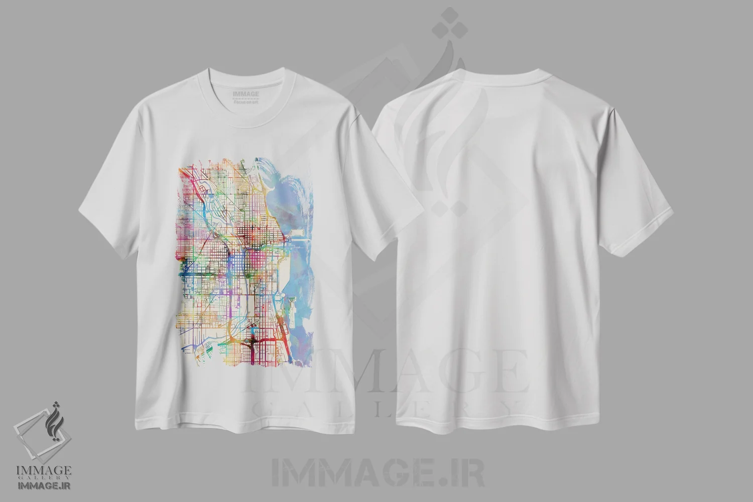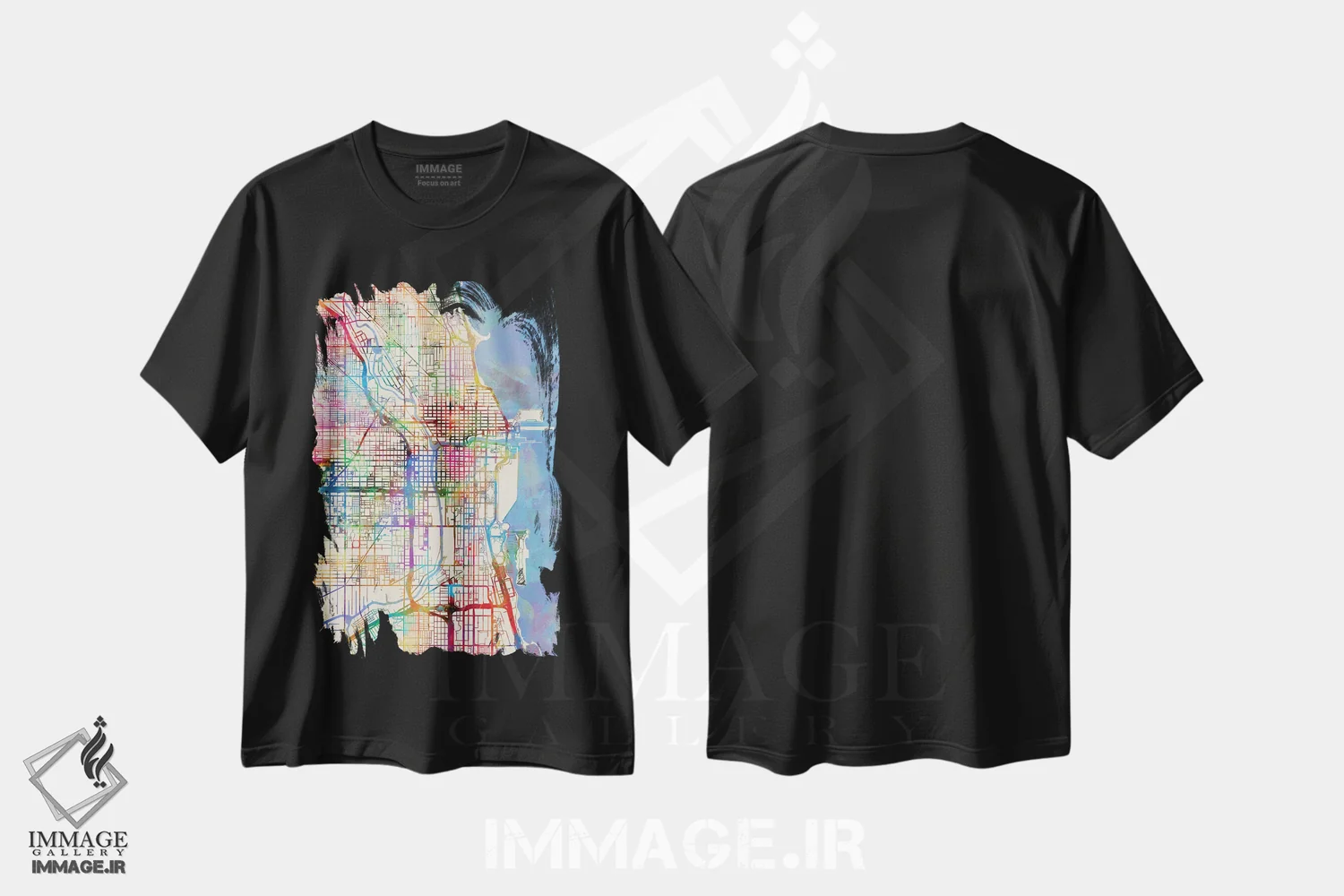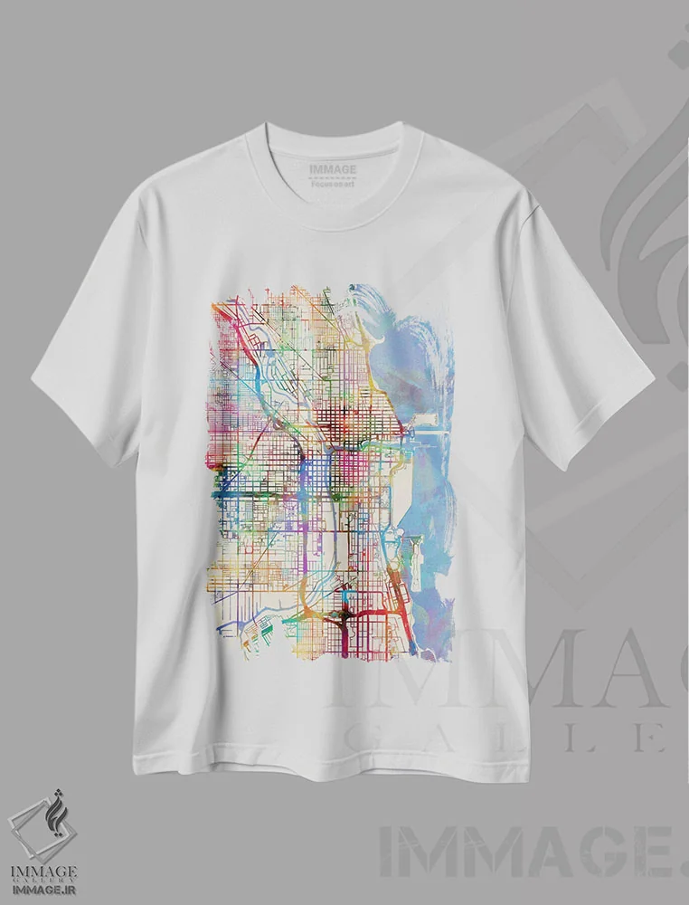 تیشرت طرح نقشه انتزاعی ,Illinois, USA,شیکاگو، ایلینوی، آمریکا اثر مایکل تامپست