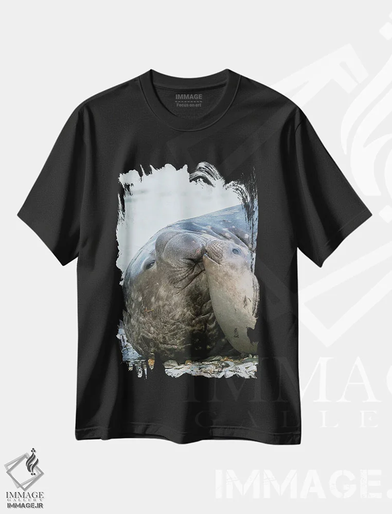 تیشرت طرح حیوانات ,فُک فیلی جنوبی نر و ماده در ساحل اثر مارتین زویک