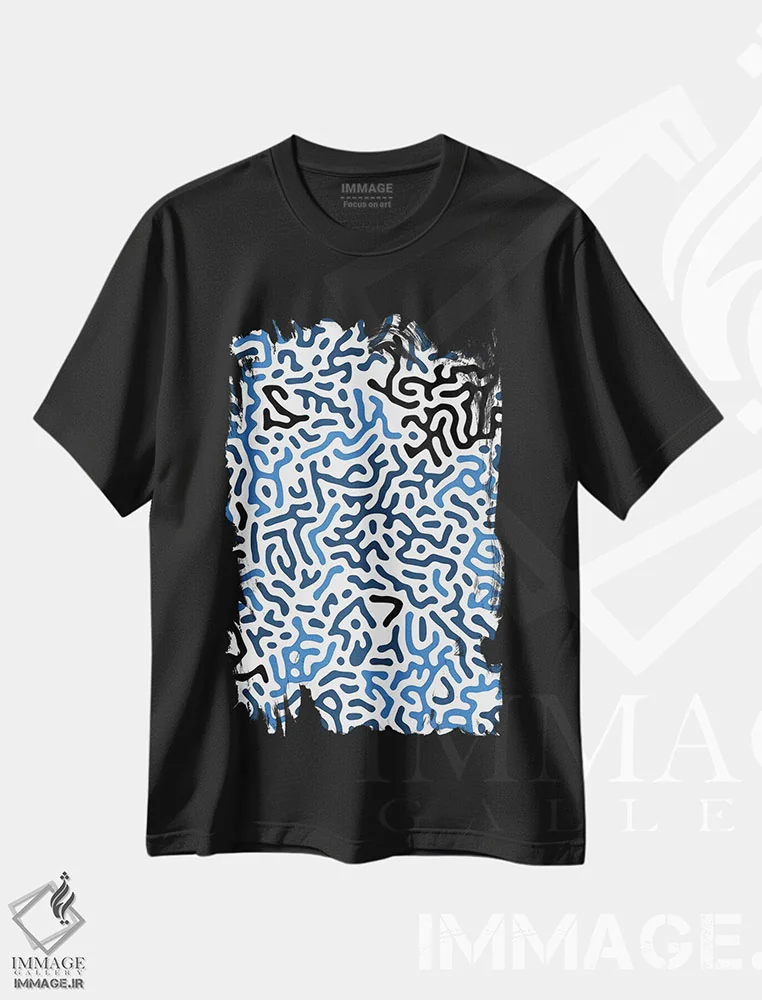تی شرت طرح «اشکال هندسی ارگانیک آبی»؛ انتخابی مدرن با روح مدرسه ای