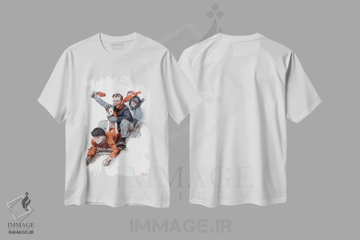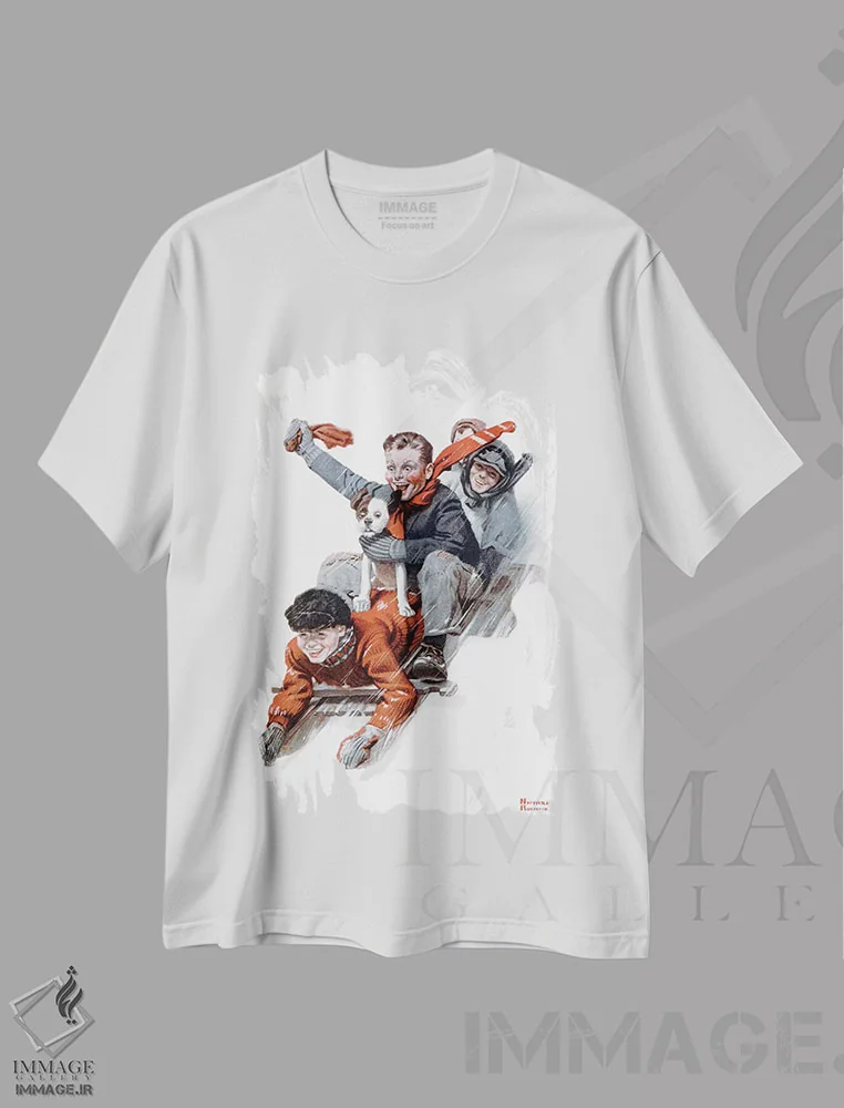 تیشرت طرح دار چهار پسر روی سورتمه اثر نورمن راکول