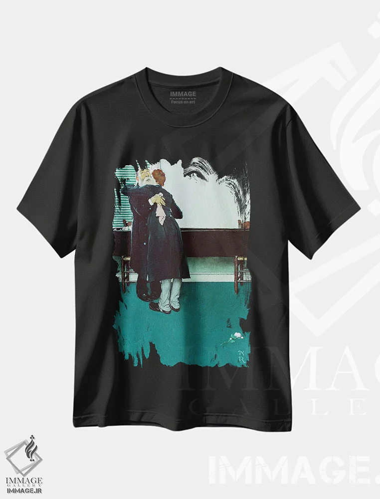 تیشرت مشکی طرح دار گریهٔ پادشاه و دوک، هنر فاخر کلاسیک اثر نورمن راکول | immage.ir