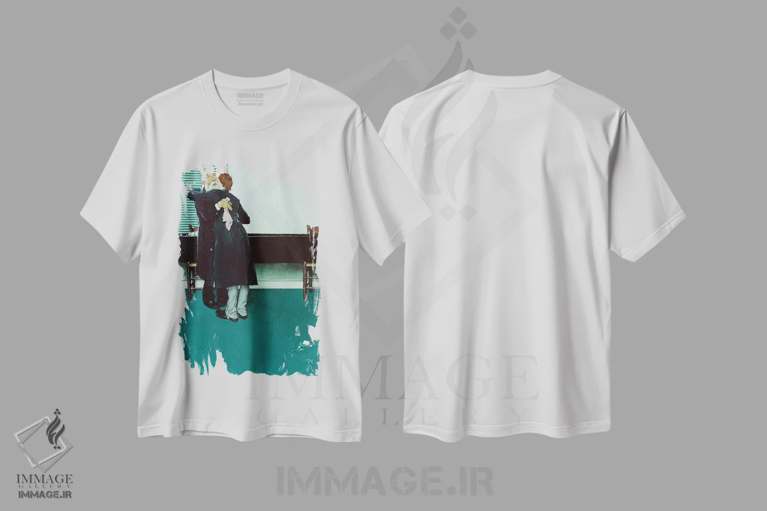تیشرت سفید طرح دار گریهٔ پادشاه و دوک، هنر فاخر کلاسیک اثر نورمن راکول | فروشگاه ایماژ