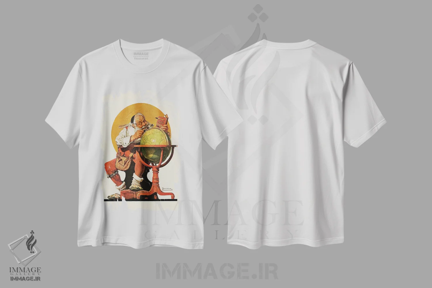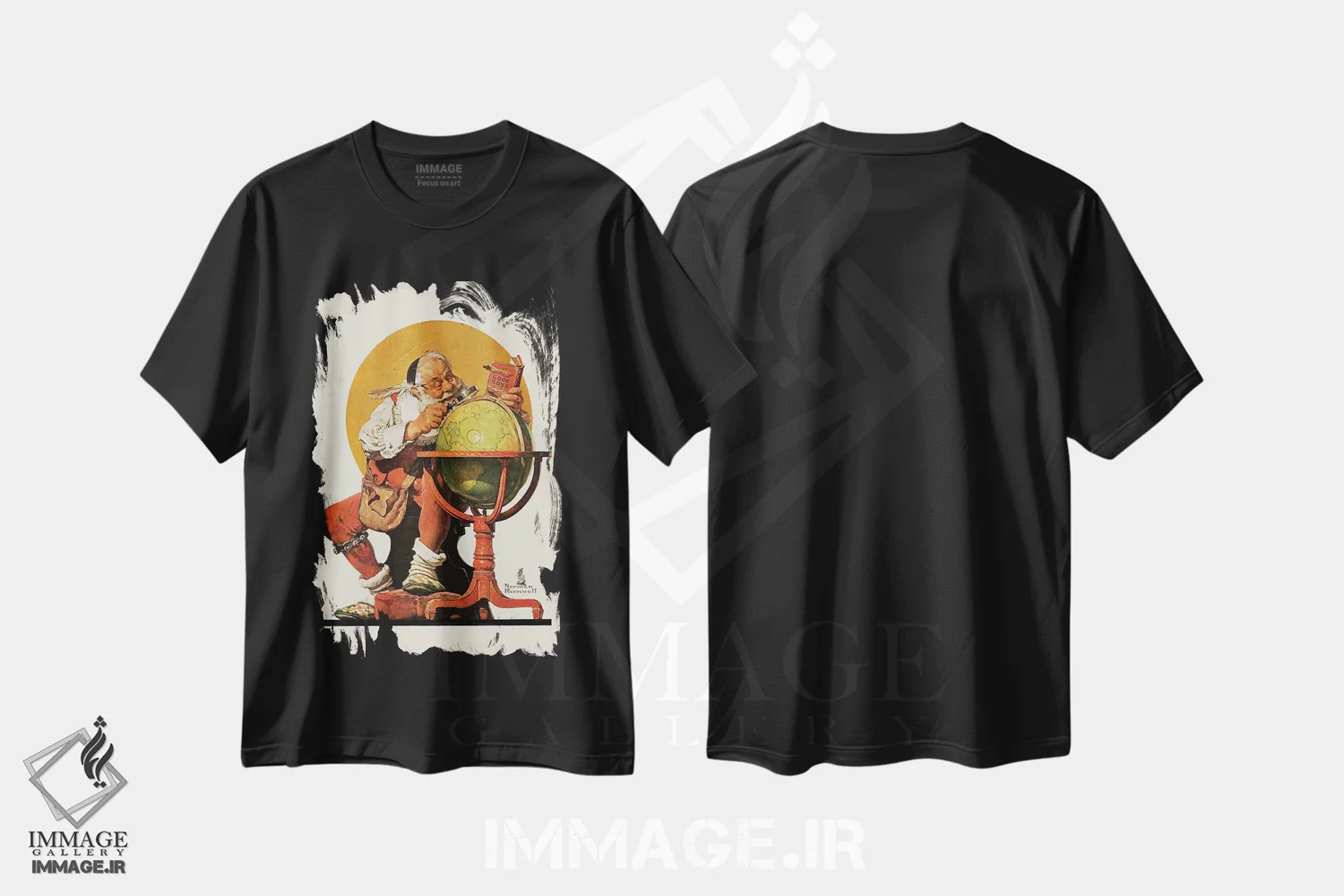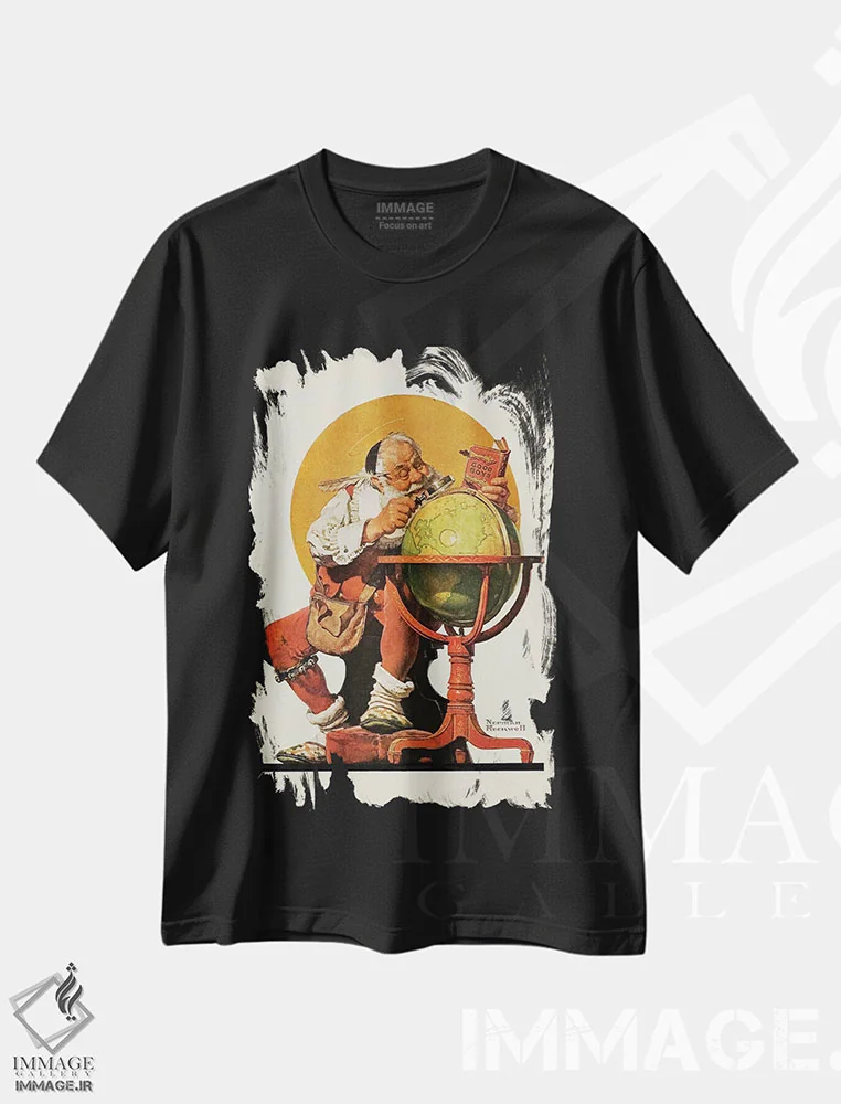 تیشرت طرح دار بابانوئل در حال بررسی کرهٔ زمین اثر نورمن راکول