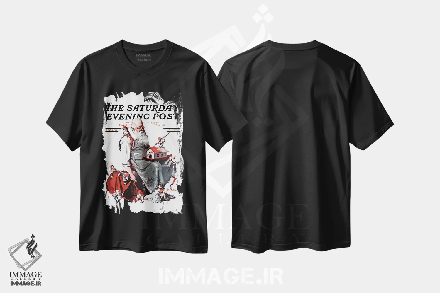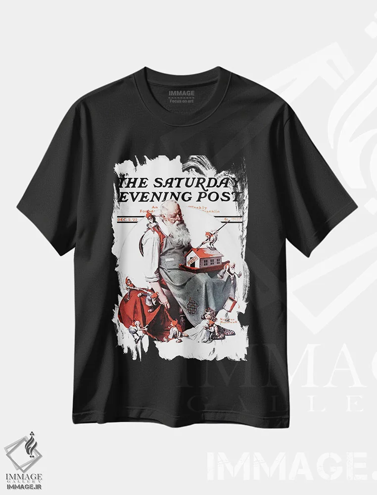 تیشرت طرح دار بابانوئل با الف ها اثر نورمن راکول