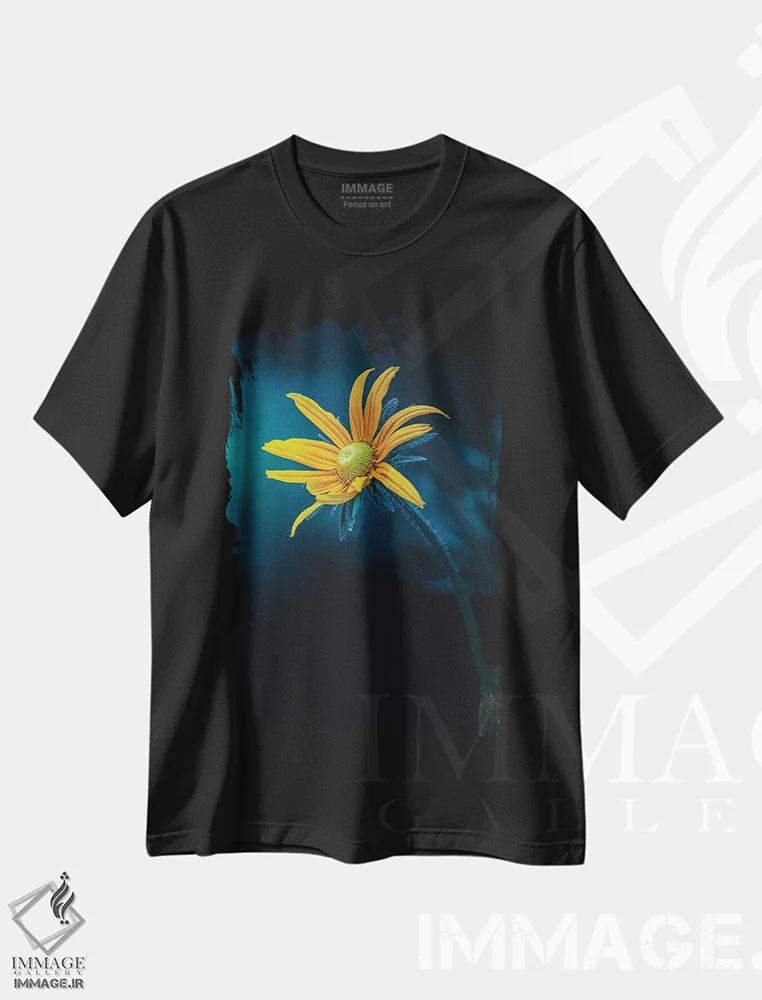 تی شرت هنری «گل زرد در نور آبی»؛ تلفیق رنگ و انرژی