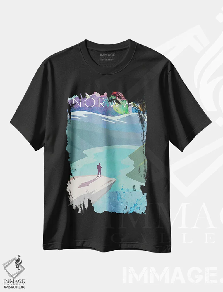 تیشرت طرح دار پوستر سفر نروژ اثر ناتالی رایان