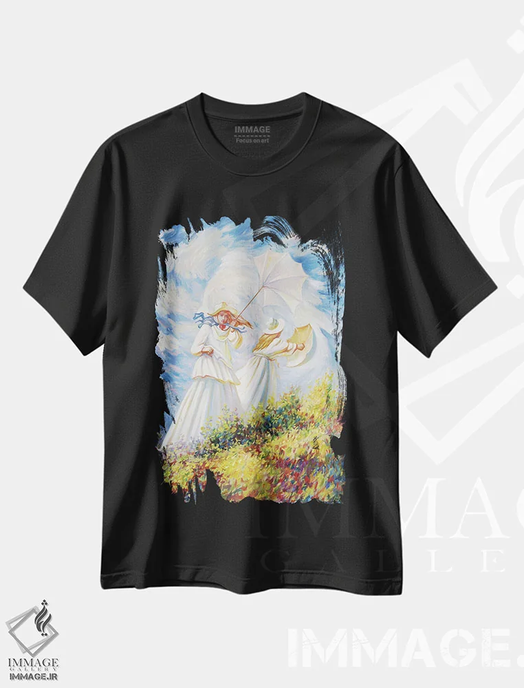 تیشرت مشکی طرح دار روز بادی مونه، مدیوم اثر اولگ شوپلیک | immage.ir