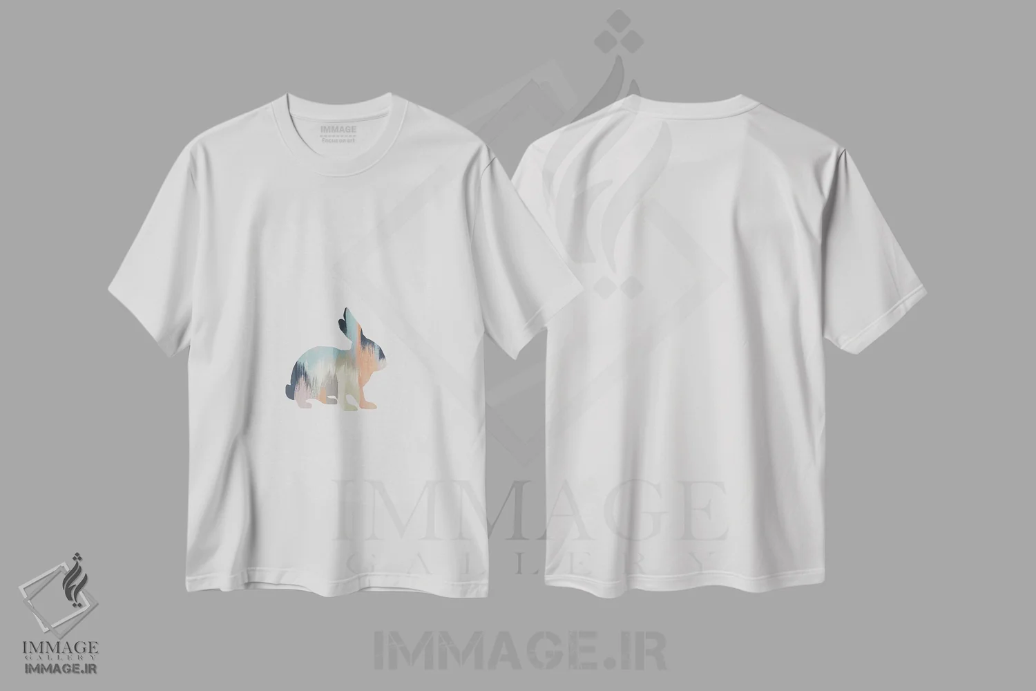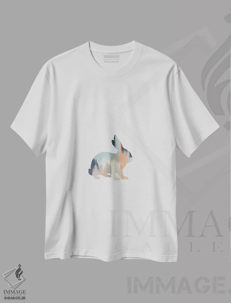 تیشرت سفید طرح دار خرگوش پاستلی، تزئینی اثر اورارا استودیو | immage.ir