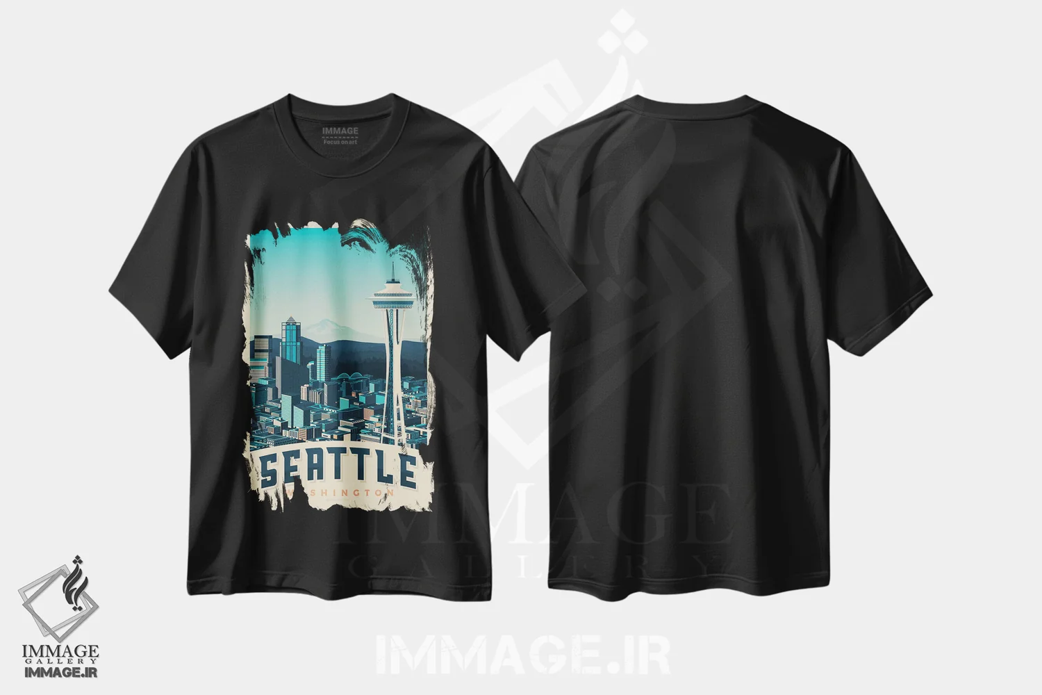 تیشرت مشکی طرح دار پوستر سفر به برج اسپیس نیدل سیاتل، تزئینی اثر اولا هوپ تراول پوسترز | فروشگاه ایماژ
