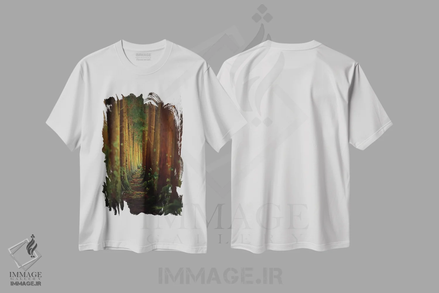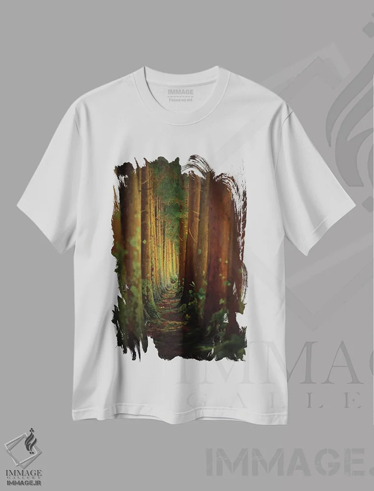 تیشرت سفید طرح دار جنگل، عکاسی هنری فاخر اثر روی کاریا | immage.ir