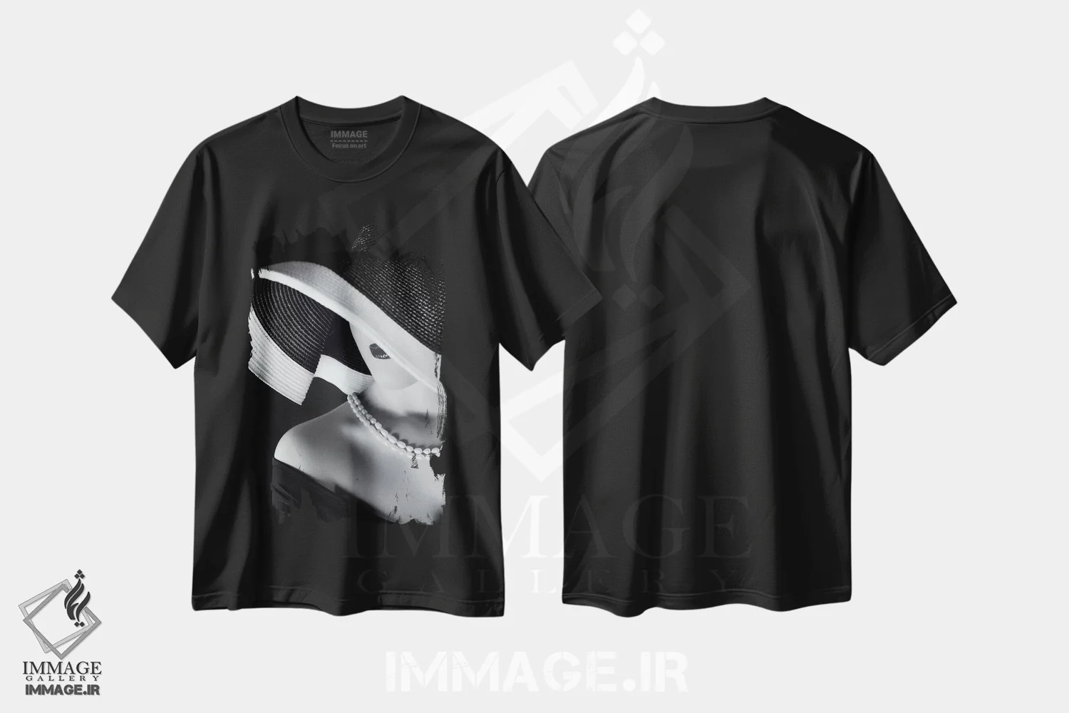 تیشرت مشکی طرح دار زن کلاه به سر، عکاسی سیاه و سفید اثر روسـلان بولگوف | immage.ir