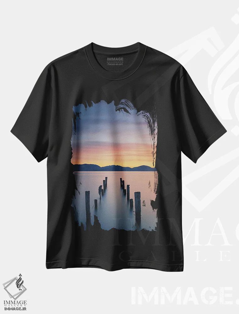 تیشرت مشکی طرح دار طلوع آفتاب روی دریاچه، مدیوم اثر سایمون رول | immage.ir