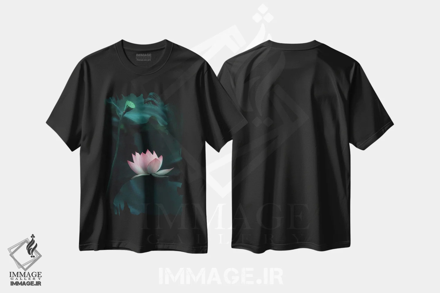 تیشرت مشکی طرح دار گل نیلوفر آبی، مدیوم اثر کترین دبلیو. | فروشگاه ایماژ