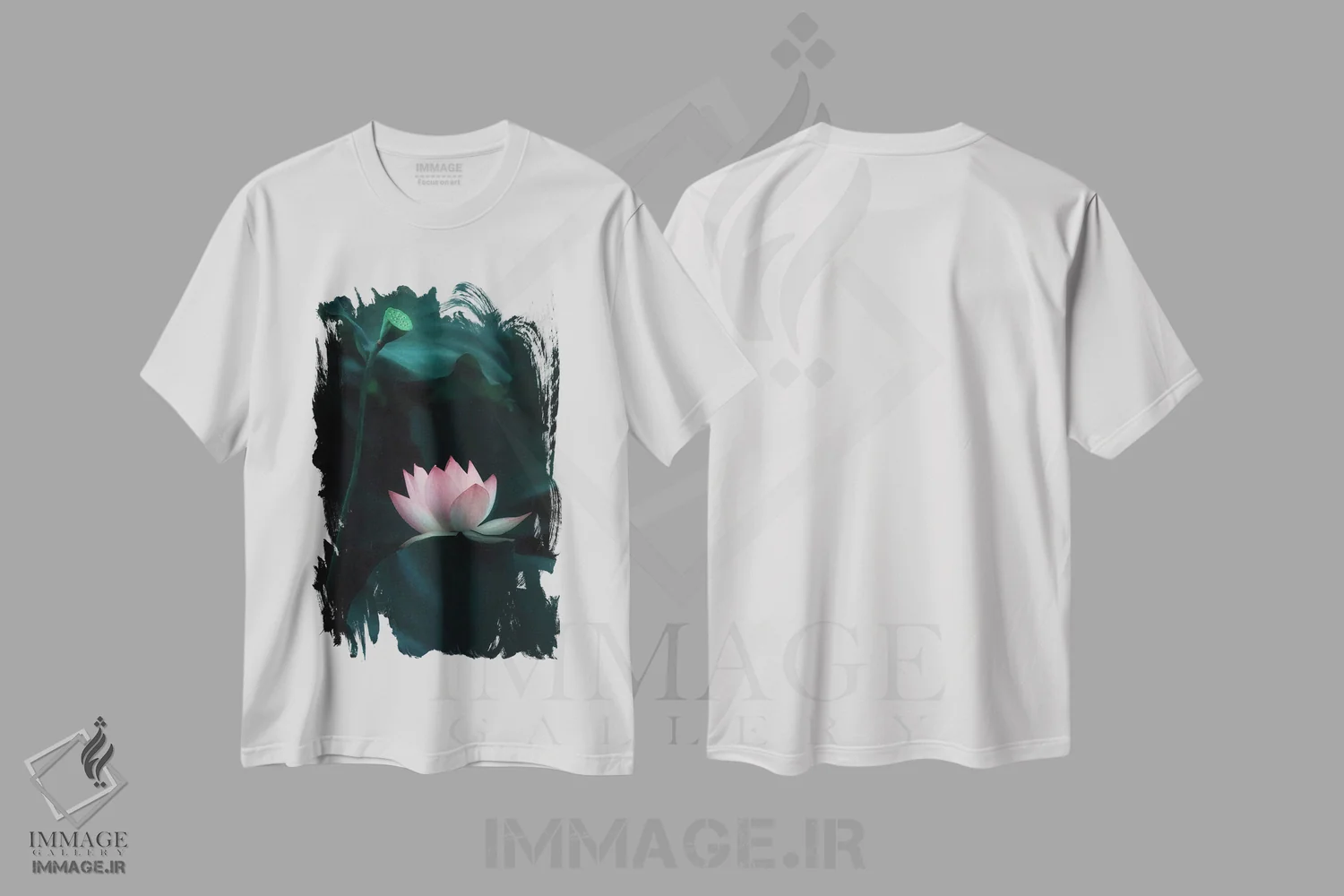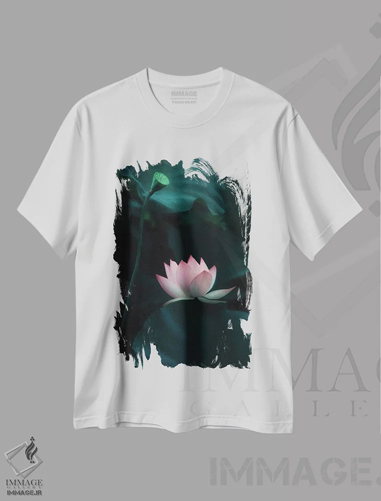 تیشرت سفید طرح دار گل نیلوفر آبی، مدیوم اثر کترین دبلیو. | immage.ir