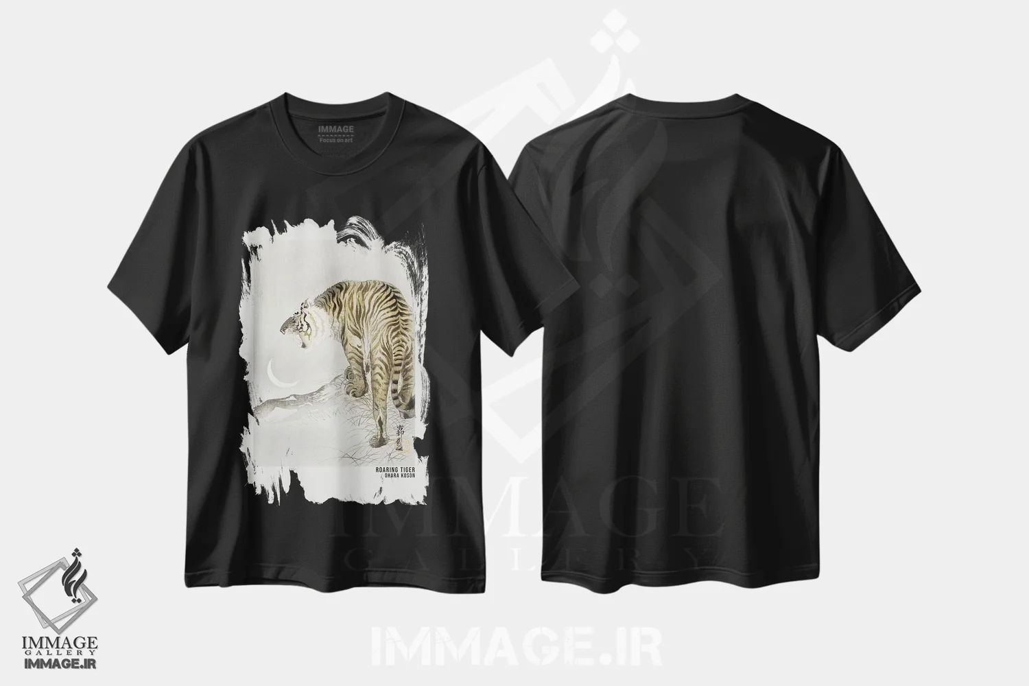 تیشرت مشکی طرح دار – تیشرت هنری حیوانات ,پوستر هنری ببر غران اثر اوهارا کسون فروشگاه ایماژ