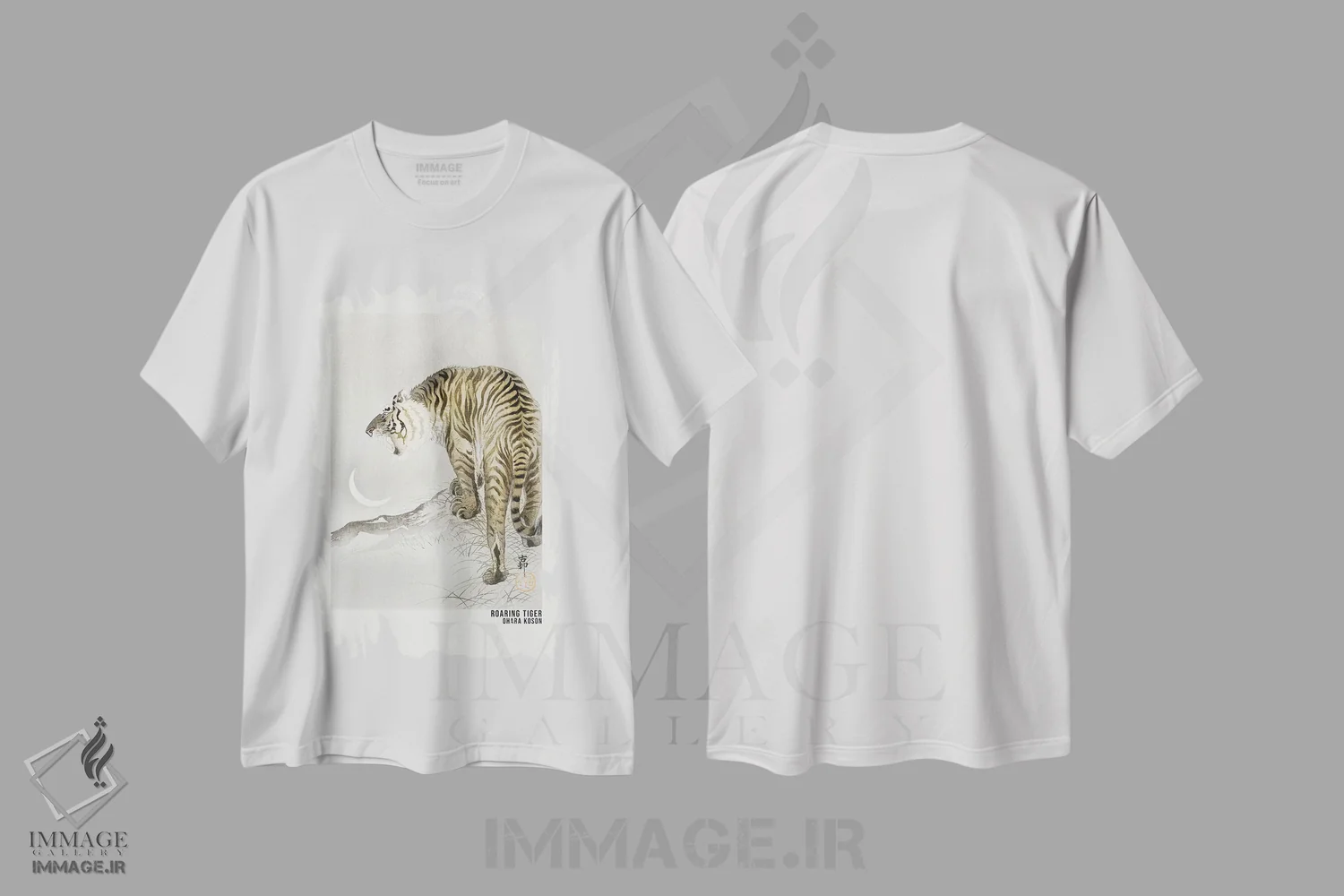 تیشرت سفید طرح دار – تیشرت هنری حیوانات ,پوستر هنری ببر غران اثر اوهارا کسون immage.ir