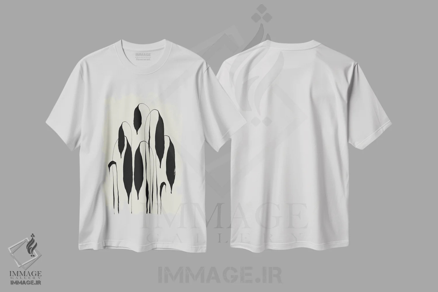 تیشرت سفید طرح دار – تیشرت مینیمالیستی ,برگ های سیاه اثر تری چایلد immage.ir