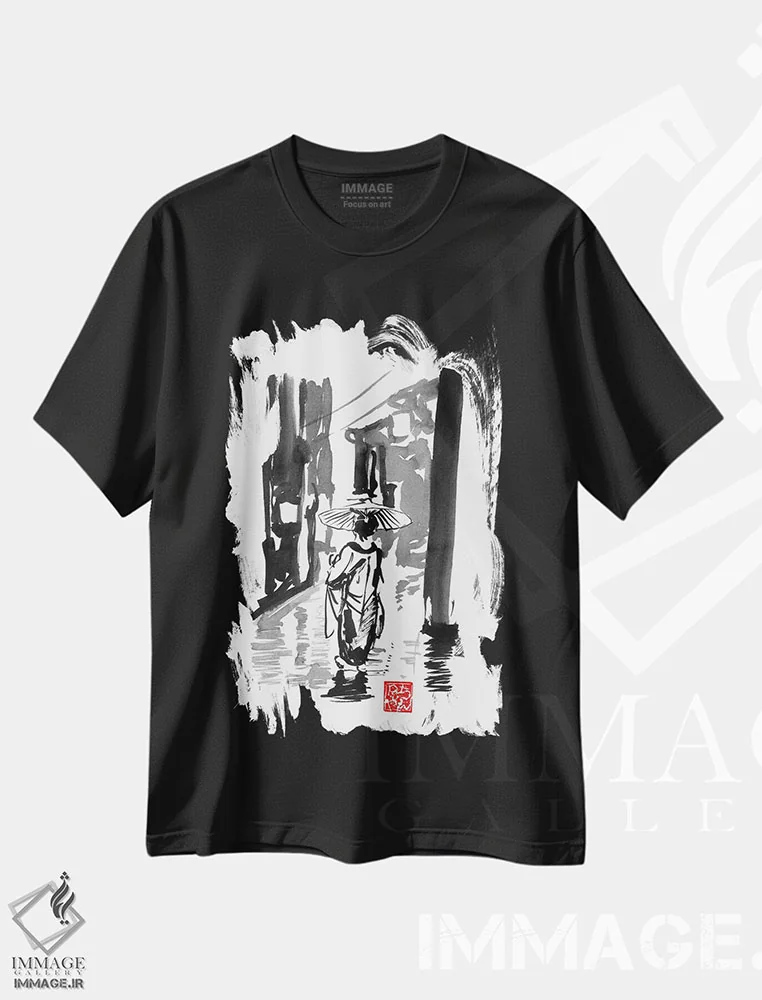 تیشرت طرح هنری ژاپنی ,روز بارانی اثر پِشان
