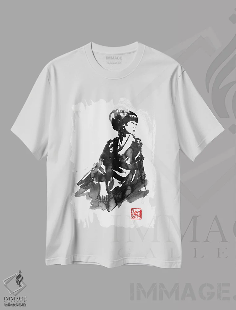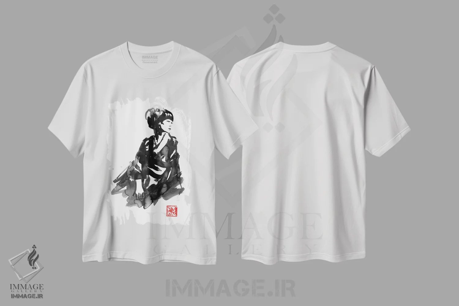تیشرت سفید طرح دار – تیشرت پرتره ,گیشا اثر پِشان immage.ir