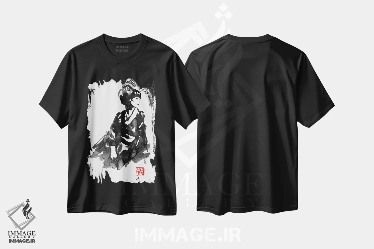 تیشرت مشکی طرح دار – تیشرت پرتره ,گیشا اثر پِشان فروشگاه ایماژ