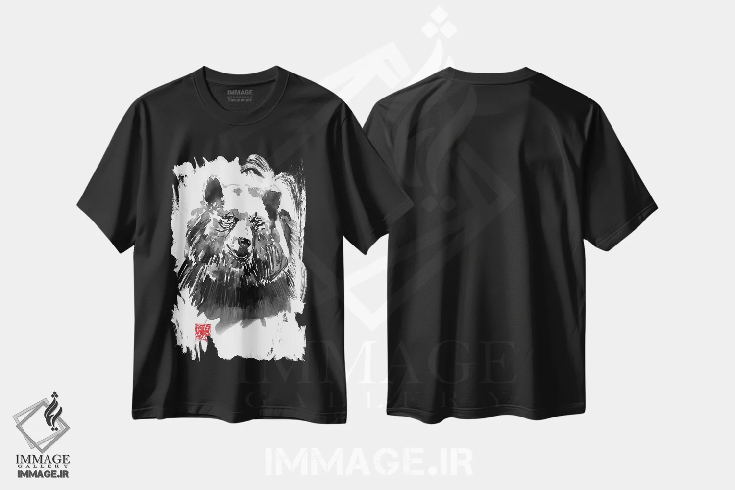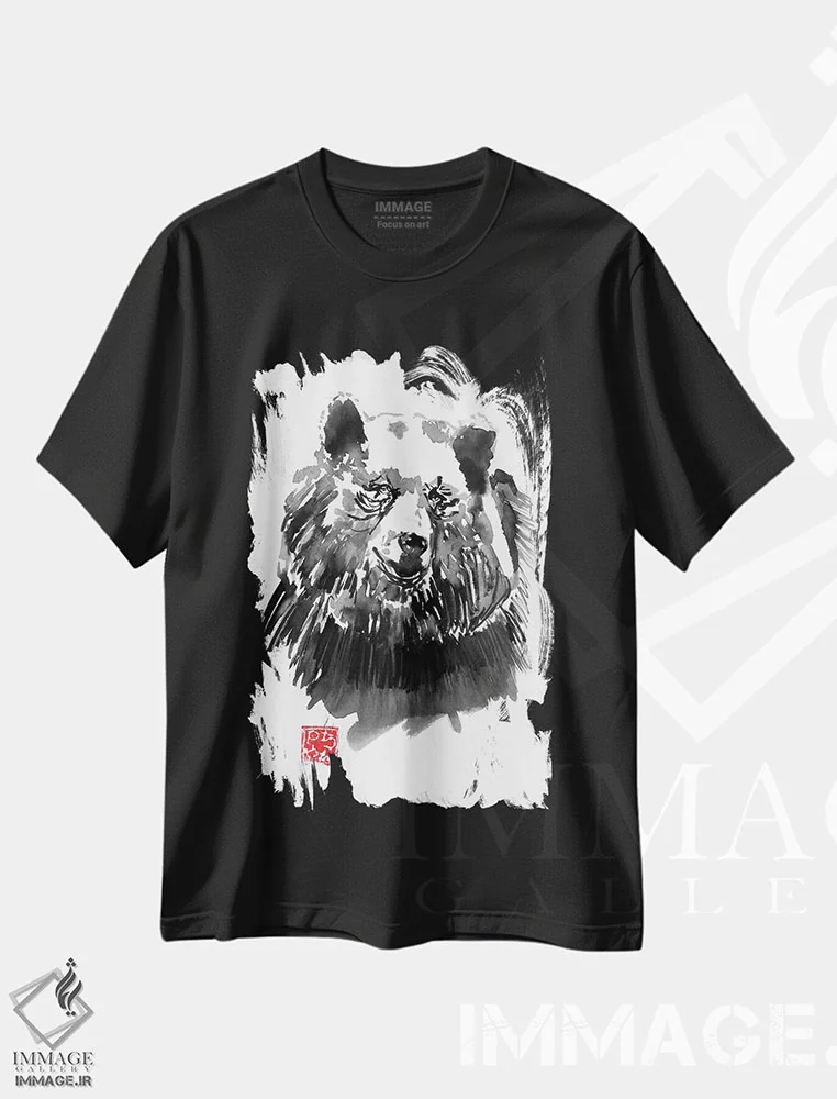 تیشرت مشکی طرح دار خرس، هنر تزئینی سیاه و سفید اثر پِشان | immage.ir