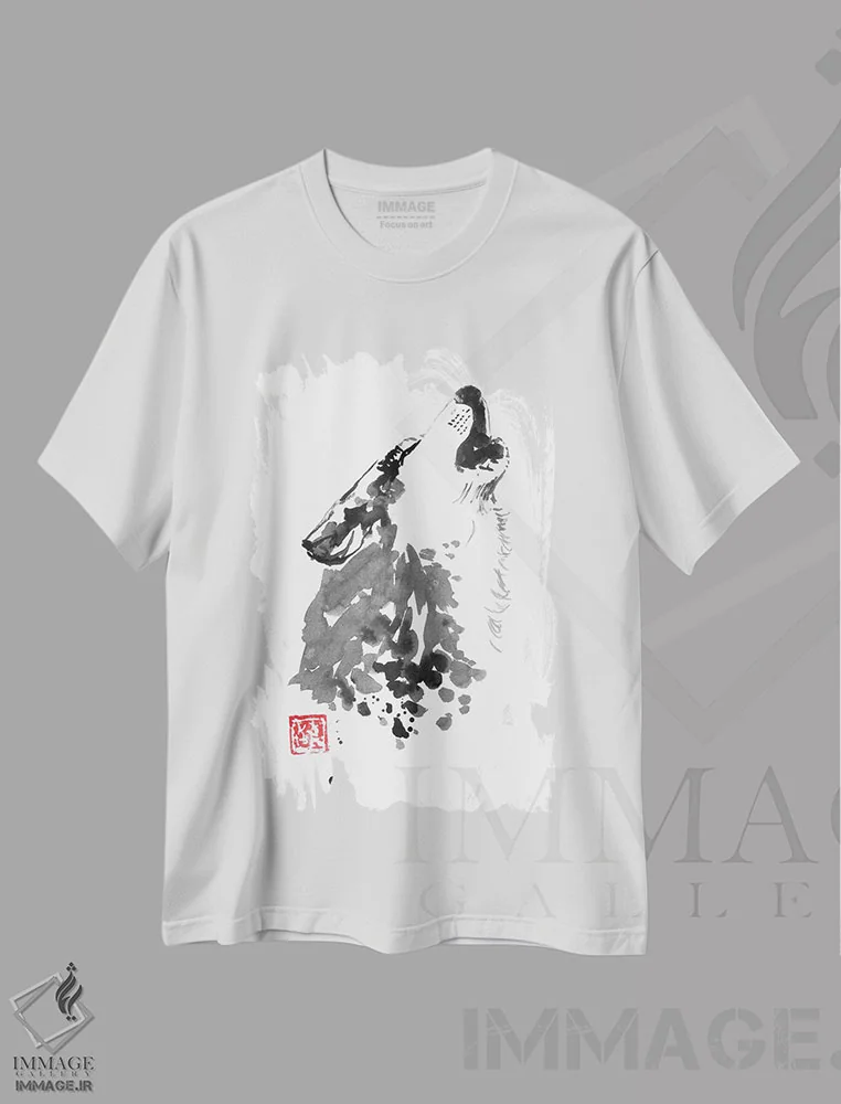 تیشرت سفید طرح دار گرگ زاری، هنر تزئینی سیاه و سفید اثر پِشان | immage.ir