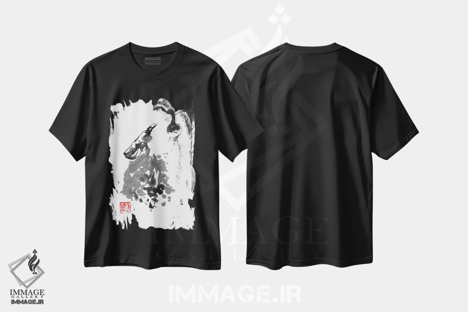 تیشرت مشکی طرح دار گرگ زاری، هنر تزئینی سیاه و سفید اثر پِشان | فروشگاه ایماژ