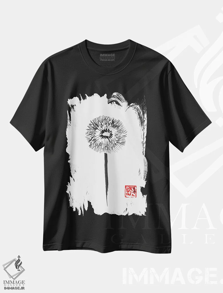 تیشرت مشکی طرح دار قاصدک، هنر تزئینی سیاه و سفید اثر پِشان | immage.ir