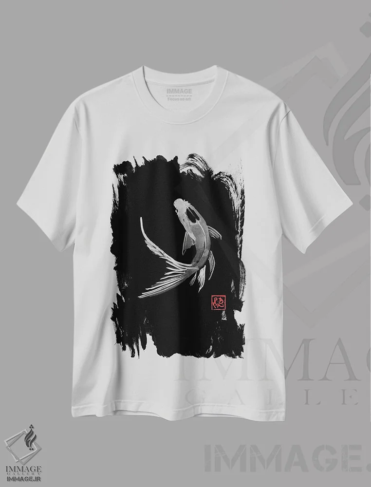 ماهی کوی سیاه؛ آرامش ژاپنی در طراحی مدرن تی شرت