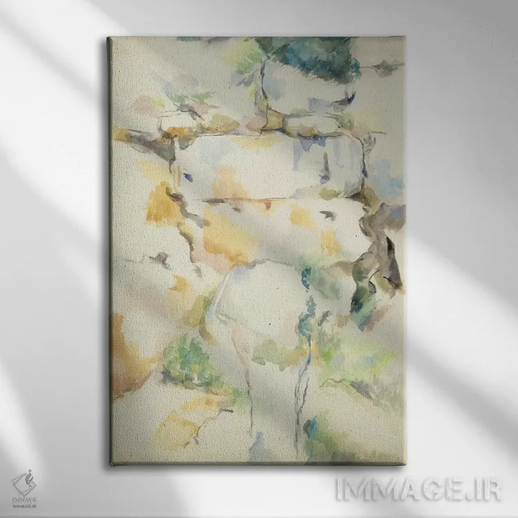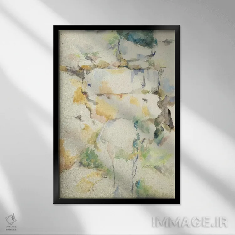 برای فضایی که میخواهید مرتبتر و حرفهایتر دیده شود، «صخرهها نزدیک غارها بالای شاتو نوآر (صخرههای بیبموس)، ۱۸۹۵—۱۹۰۰» اثرِ «پل سزان» بدون شلوغکاری، توجه را دقیق جمع میکند؛ برای اتاق کار و گوشهٔ مطالعه پیشنهاد میشود. اگر دنبال زیباییِ بیادعا هستید، این اثر درست مینشیند.