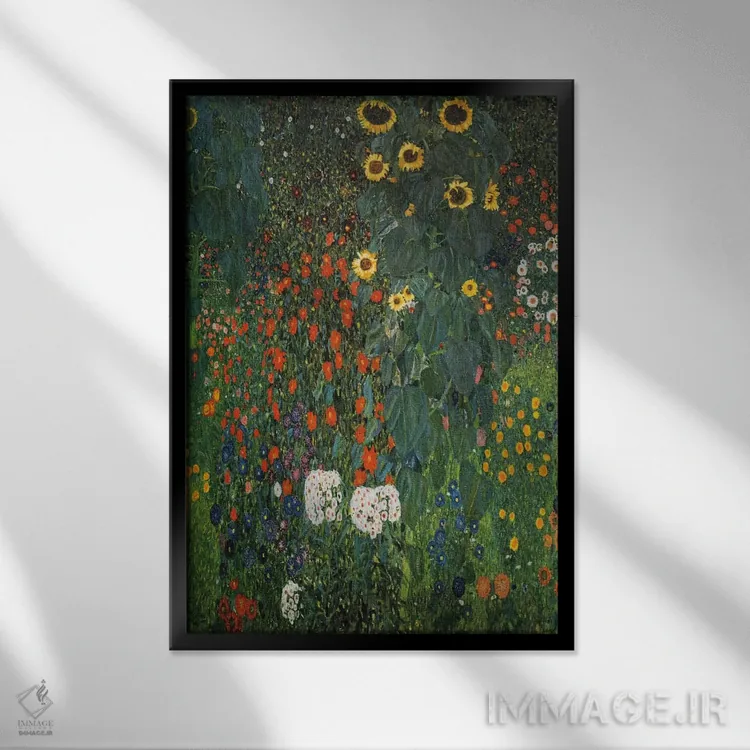 تابلو باغ مزرعه با گل‌های آفتابگردان، ۱۹۱۲ اثر گوستاو کلیمت - نمای قاب‌دار مشکی