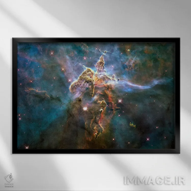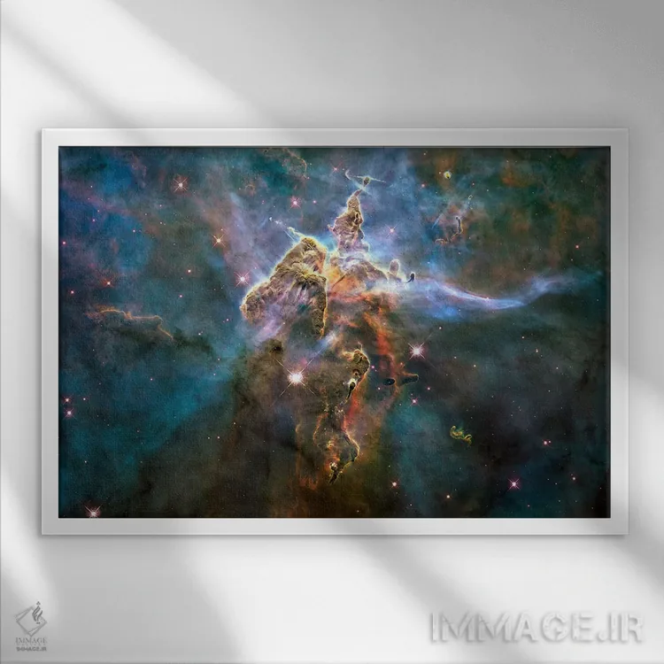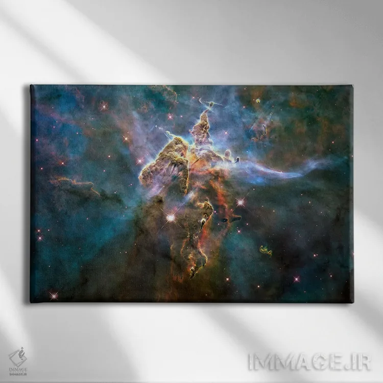 تابلو کوه مرموز در سحابی کارینا (تلسکوپ فضایی هابل) اثر ناسا (آژانس فضایی آمریکا)