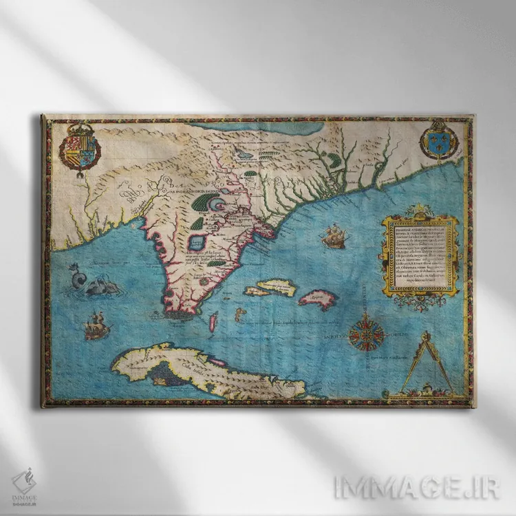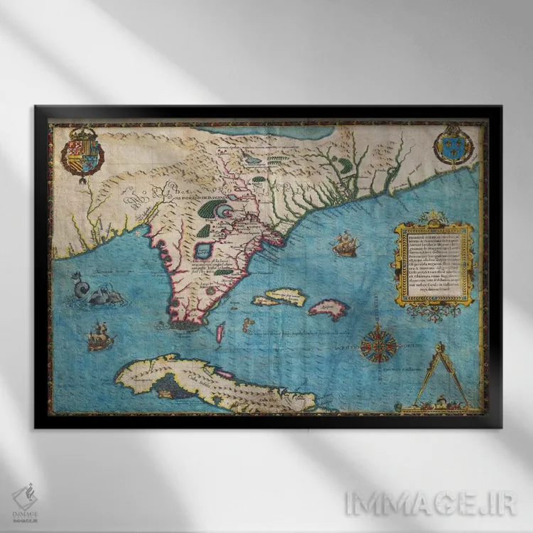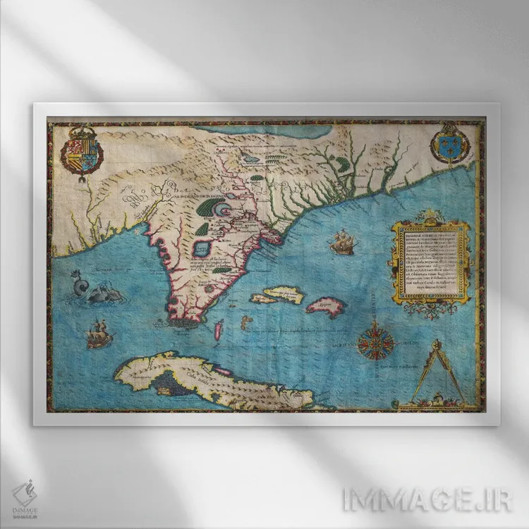 برای خانههایی که به زیباییِ آرام علاقه دارند، «نقشه فلوریدا و کوبا، ۱۵۸۸» اثرِ «ژاک لو مواین د مورگ» تضادهای رنگی را خوشقوارهتر میکند؛ برای دکورهایی که بافت و جزئیات در آن مهم است پیشنهاد میشود. برای هدیه دادن هم انتخابی محترمانه و امن است.