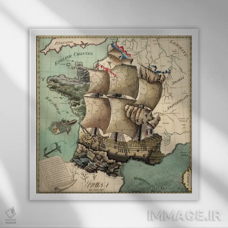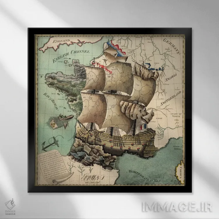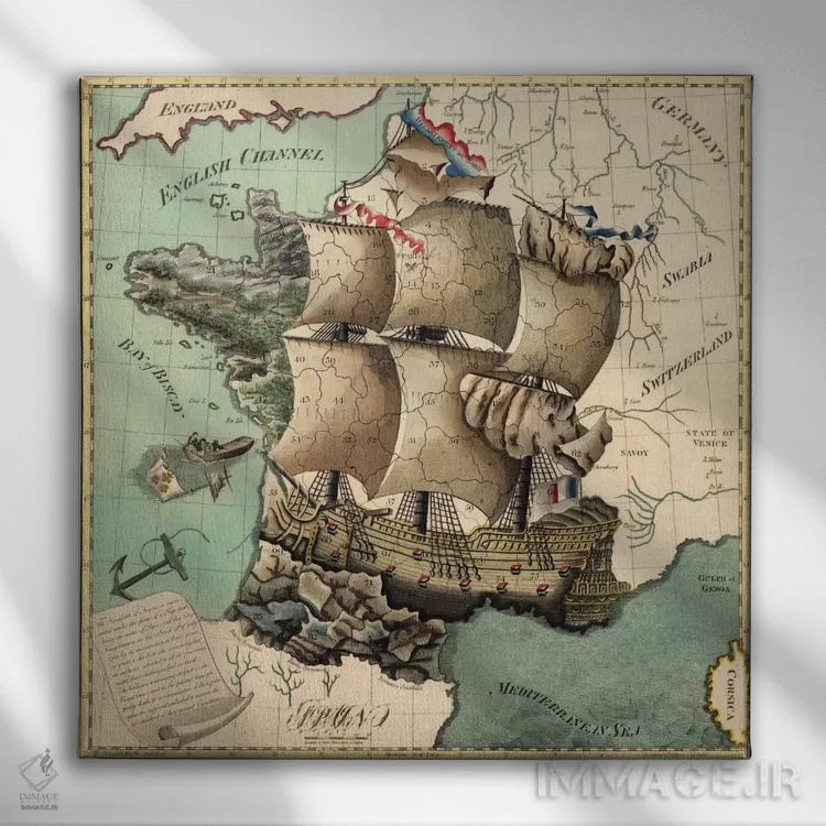 تابلو نقشه قدیمی فرانسه اثر هنرمند ناشناس