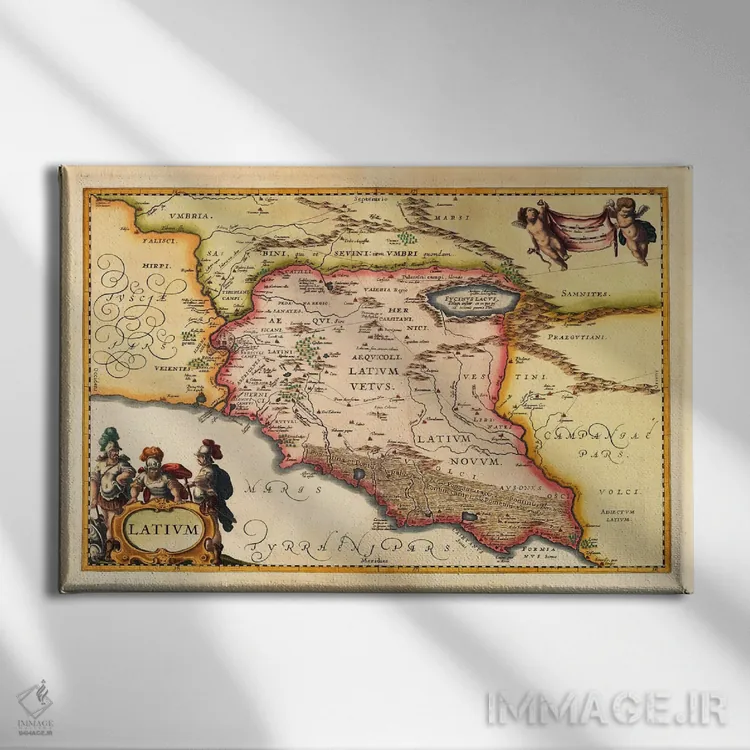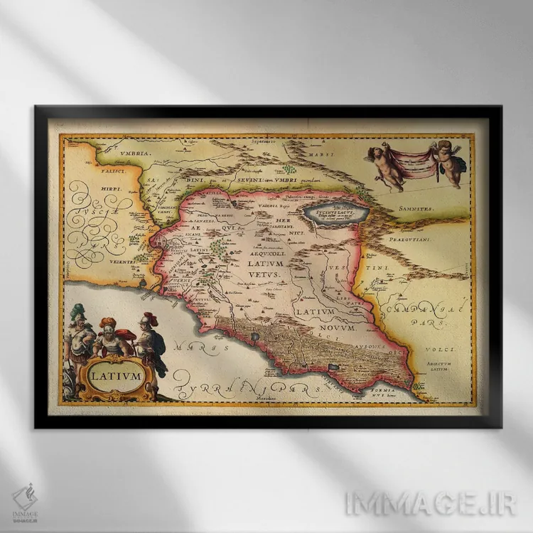«نقشه قدیمی لاتزیو (لاتیوم) (۱۹۴۹—۱۹۶۰)» اثرِ «یوهانس یانسونیوس» با حالوهوای هنری، حس نوستالژی را شیک و دکورپذیر به فضا اضافه میکند.