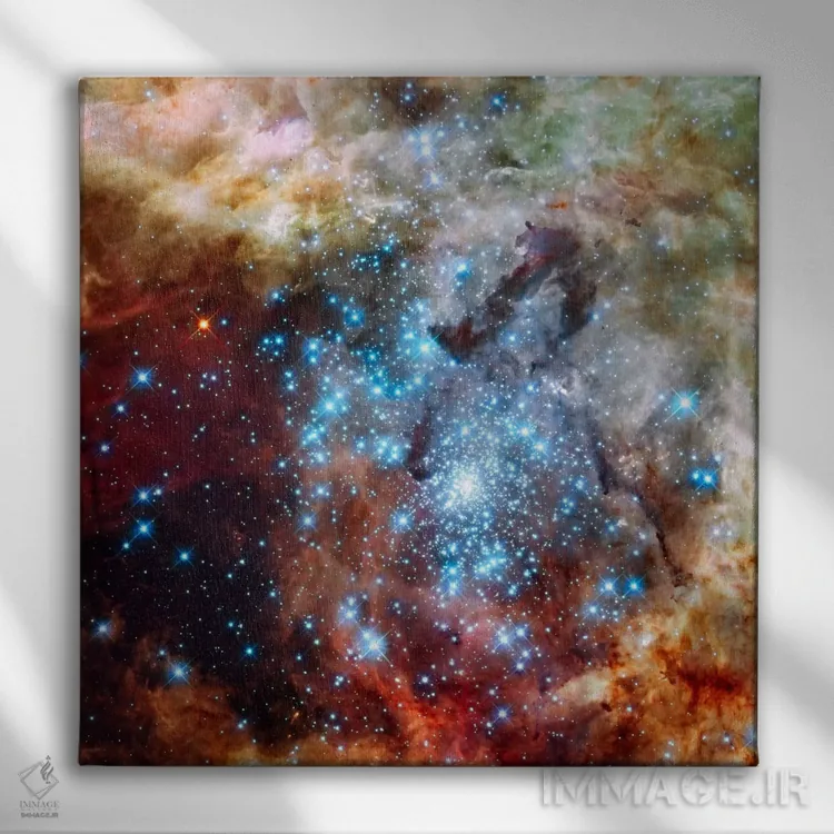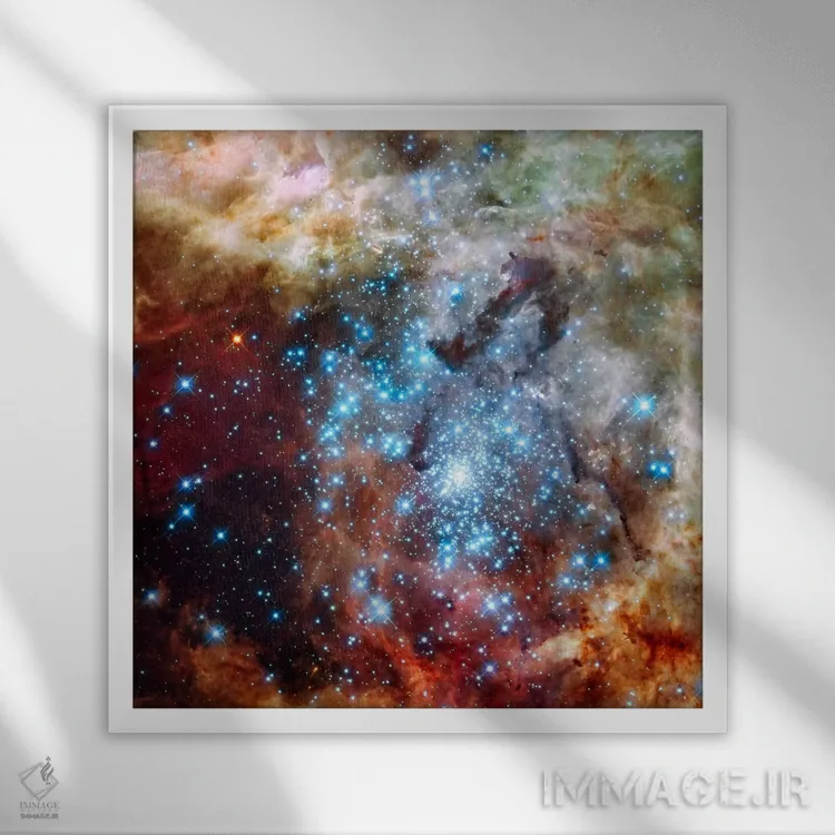 تابلو خوشه ستارهای در مسیر برخورد (تلسکوپ فضایی هابل) اثر ناسا (آژانس فضایی آمریکا)