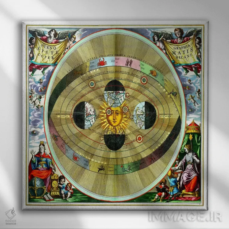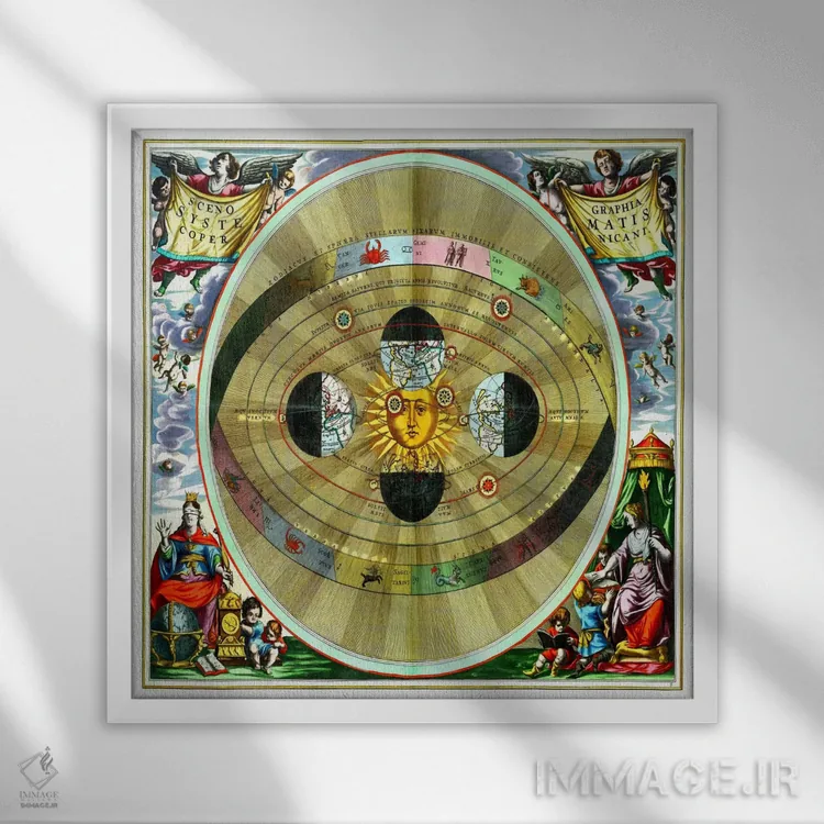 «هارمونیا ماکروکوسمیکا (آندریاس سلاریوس)» اثرِ «آندریاس سلاریوس (ستارهشناس و نقاش آلمانی—هلندی)» از آن انتخابهاییست که به دیوار، شخصیت و جهت میدهد؛ برای دیوارهای گالریوار و ترکیب چند اثر انتخابی عالی است. برای فضاهایی که دنبال «وقار» هستند، انتخابی مطمئن است.