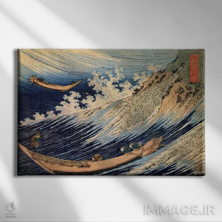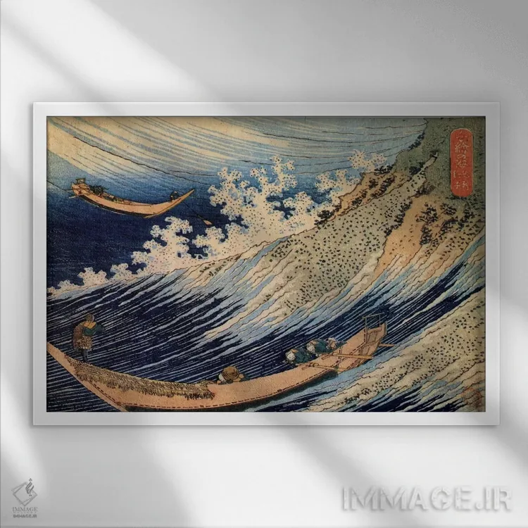 «چوشی در استان سیموسا از اقیانوسهای خرد (موجهای هوکوسای)» اثرِ «کاتسوشیکا هوکوسای (نقاش و هنرمند ژاپنی)» با حالوهوای دکور آسیایی و موضوعِ این اثر، برای فضاهای آرام، مینیمال و متعادل انتخاب مناسبی است.
