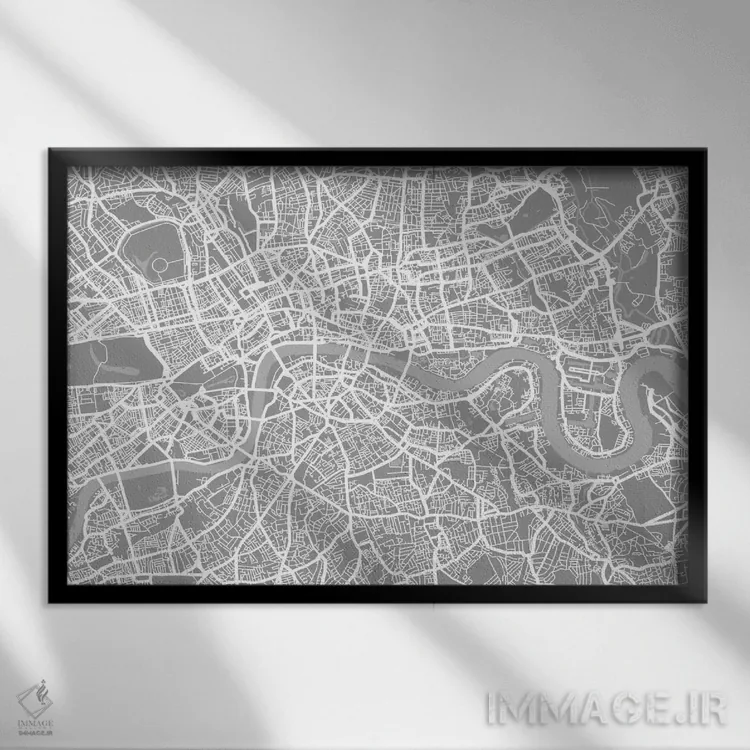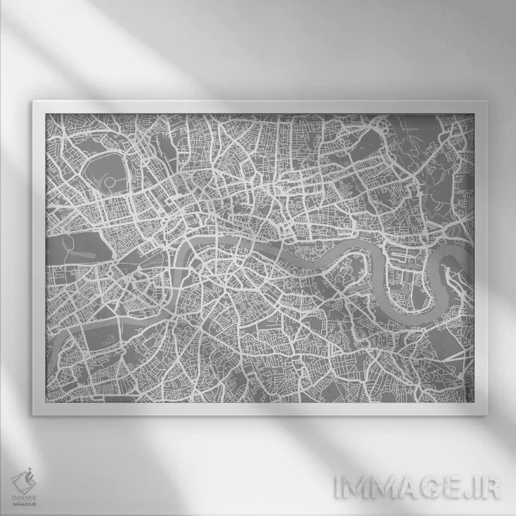 تابلو نقشه لندن ۵ اثر مایکل تامپست - نمای قاب‌دار سفید