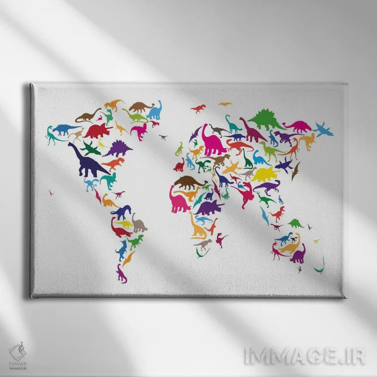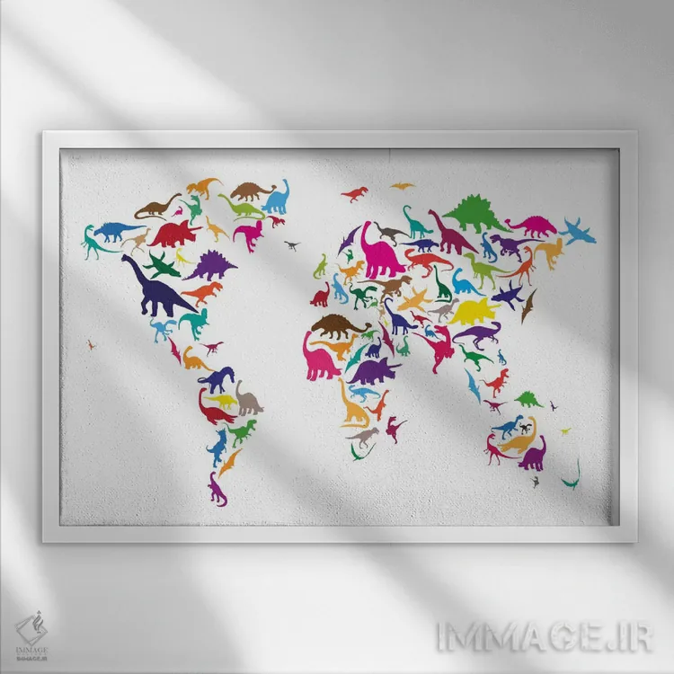 اگر میخواهید دیوار کمی سرزندگیِ محترمانه داشته باشد، «نقشه دایناسوری جهان ۲» اثرِ «مایکل تامپست» مثل یک امضای بامزه اما متین عمل میکند، برای فضاهای روستیک یا بوهو گزینهٔ مناسبیست. در کنار گیاهان و نور طبیعی، جذابتر هم میشود.