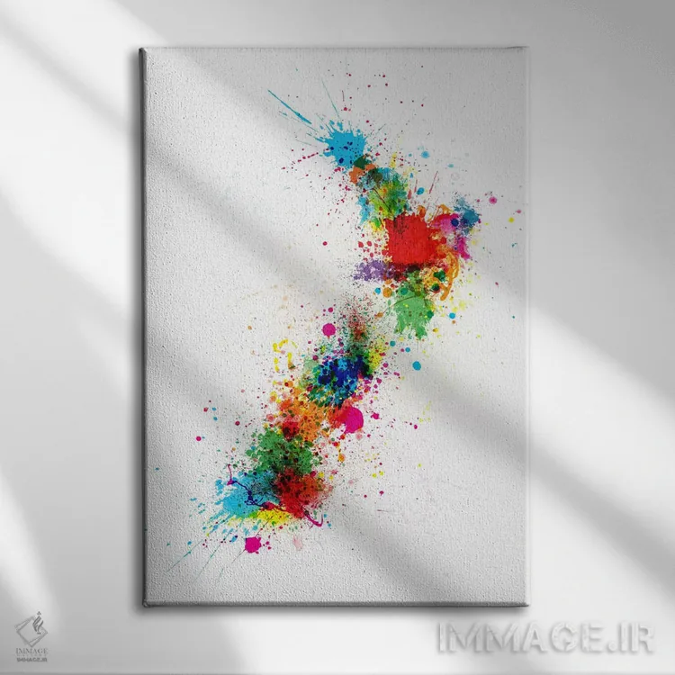 «نقشه نیوزیلند با پاشش رنگ» اثرِ «مایکل تامپست» با لحن هنری، نقطهٔ کانونی میسازد بدون اینکه فضا را شلوغ کند.