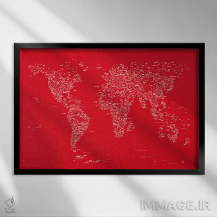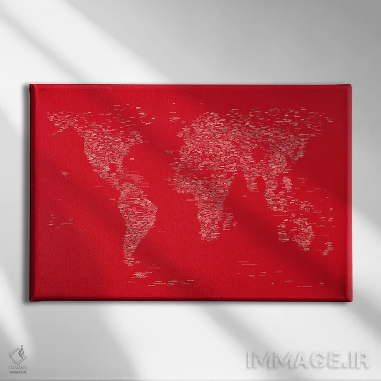 تابلو نقشه جهان با فونت (قرمز) اثر مایکل تامپست