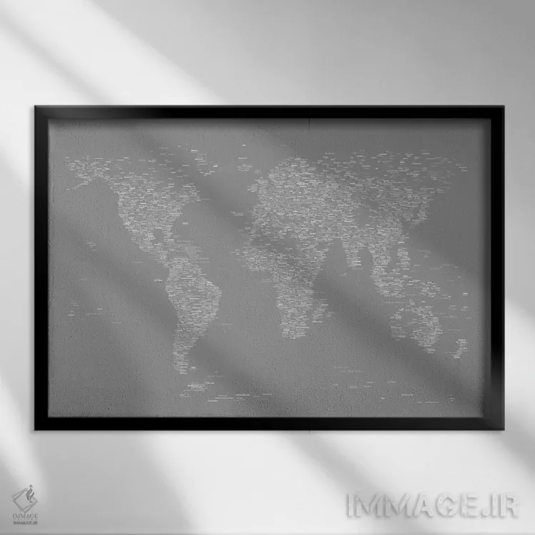 تابلو نقشه جهان با فونت (خاکستری) اثر مایکل تامپست