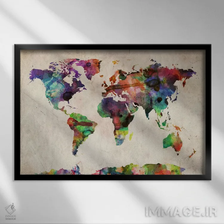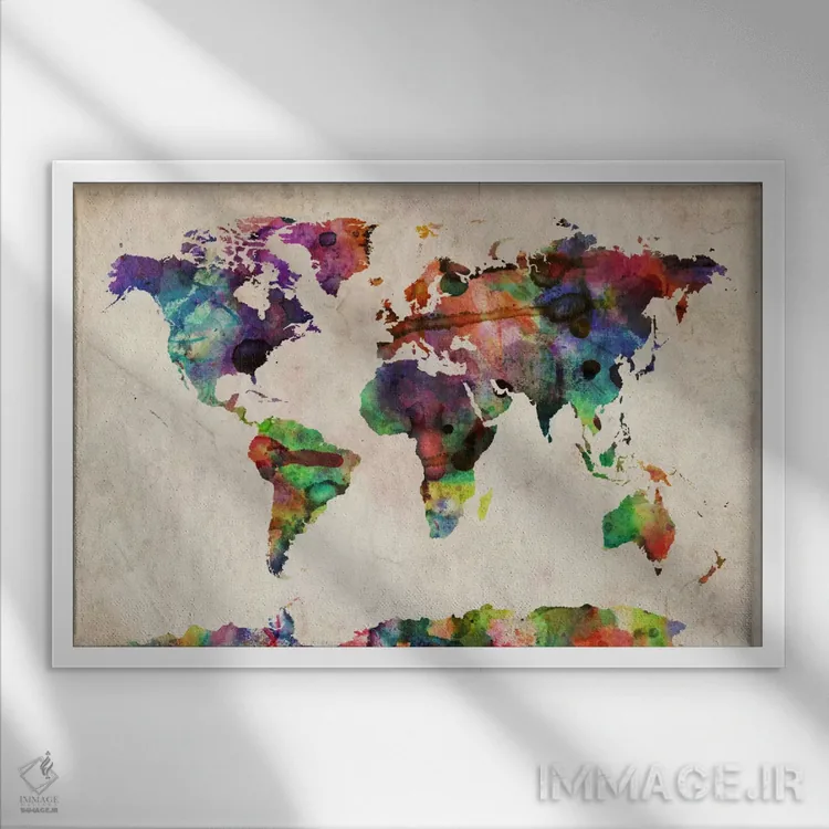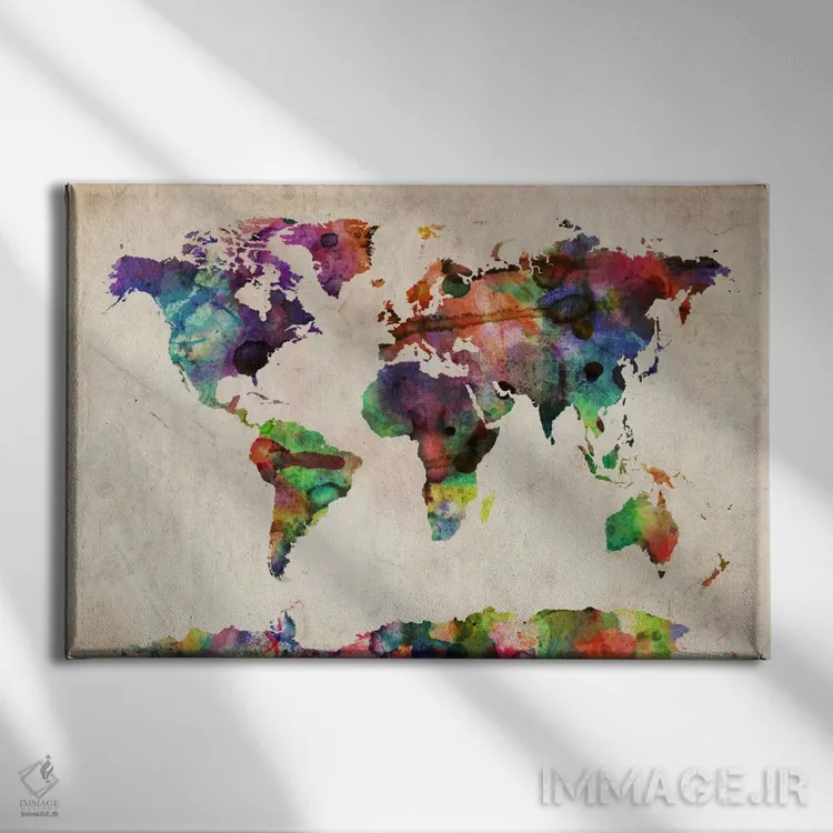 تابلو نقشه جهان آبرنگ شهری ۲ اثر مایکل تامپست