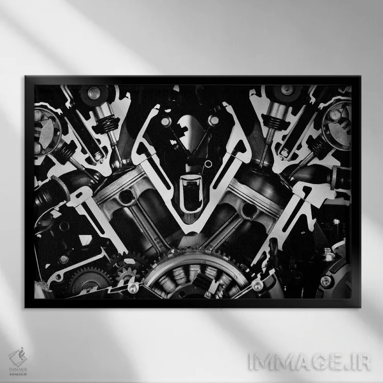 تابلو نمای جلوی موتور خودرو (سیاه و سفید) اثر هنرمند ناشناس - نمای قاب‌دار مشکی