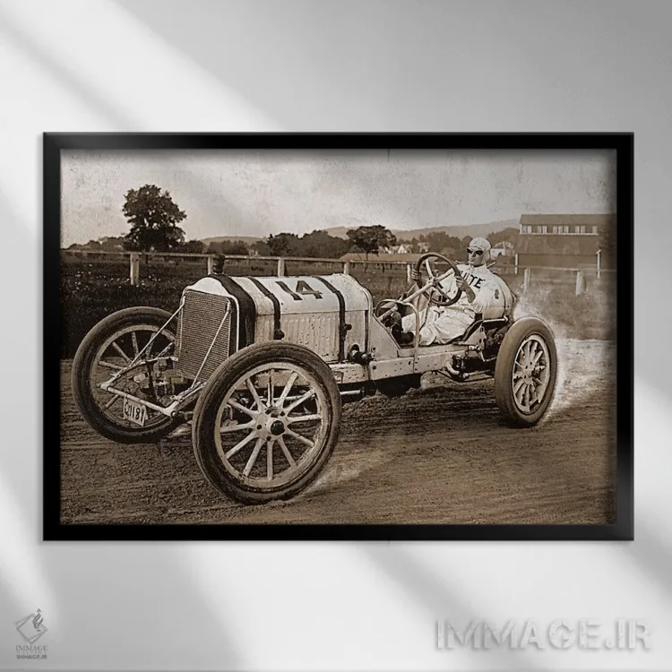 تابلو خودروی مسابقهای قدیمی (عکس وینتیج) اثر هنرمند ناشناس
