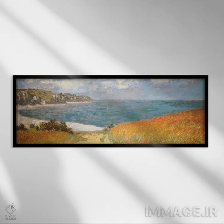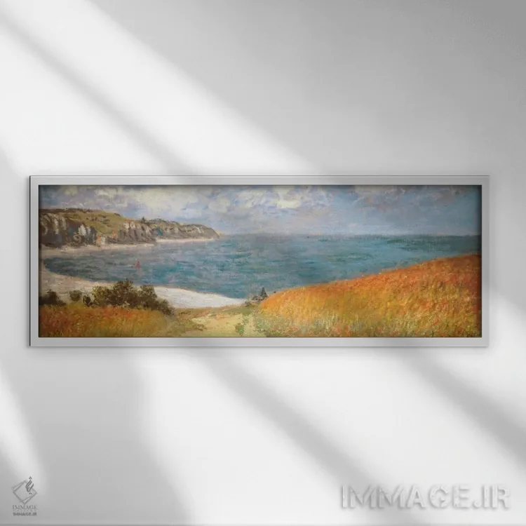 تابلو مسیر میان ذرتزار در پوروویل اثر کلود مونه (نقاش معروف فرانسوی) - نمای روبه‌رو روی دیوار
