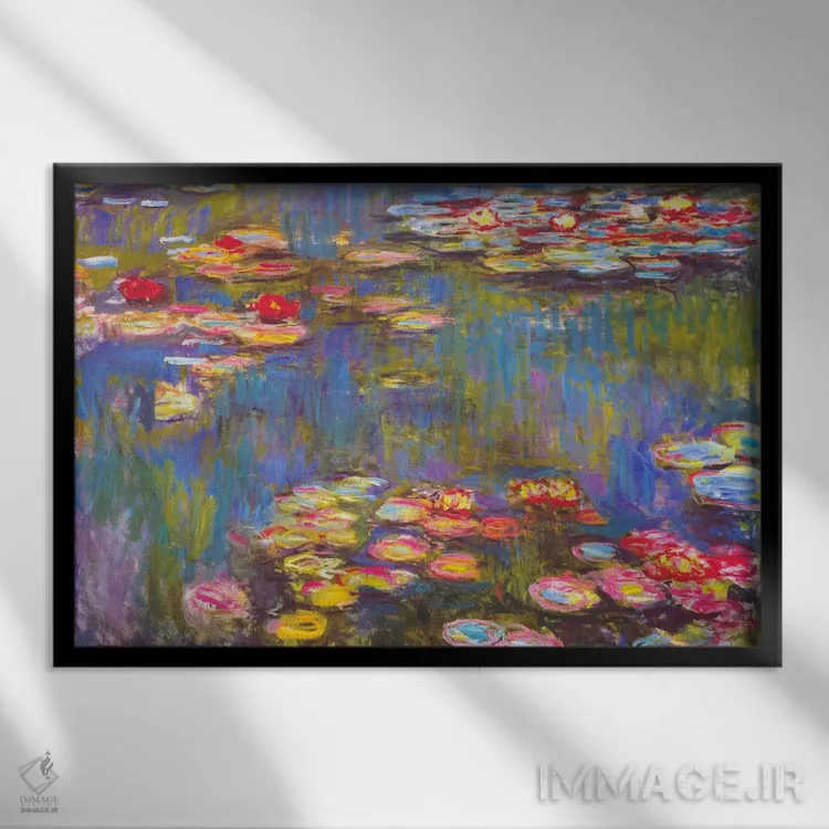 تابلو نیلوفرهای آبی، ۱۹۱۶ اثر کلود مونه (نقاش معروف فرانسوی) - نمای قاب‌دار مشکی