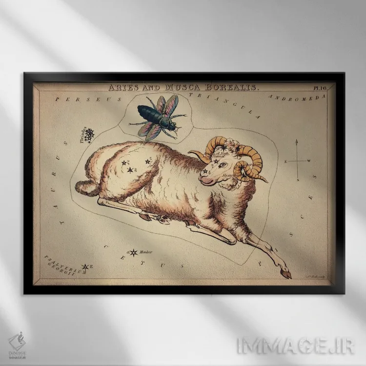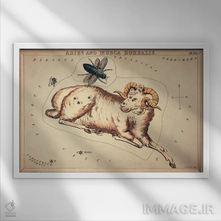 براساس پالت گرم اثر، قاب بلوط روشن (چوبی) پیشنهاد اول است و استخوانی ملایم مکمل. برای سفارشهای پروژهای با ابعاد و قابهای اختصاصی با ایماژ در تماس باشید.